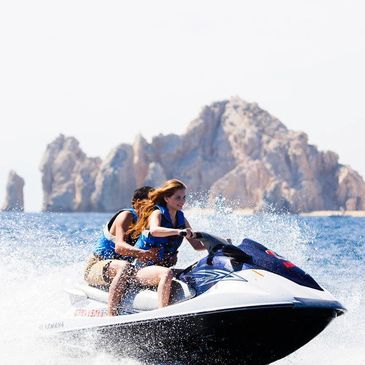 Jet skiing in Cabo San Lucas is a fun and exhilarating way to explore the beautiful coastline and warm waters of the area. You'll have the freedom to zip around on a high-powered watercraft, with rentals. You can speed along the beaches, jump waves, and take in the stunning views of the surrounding landscape. It's a perfect activity for